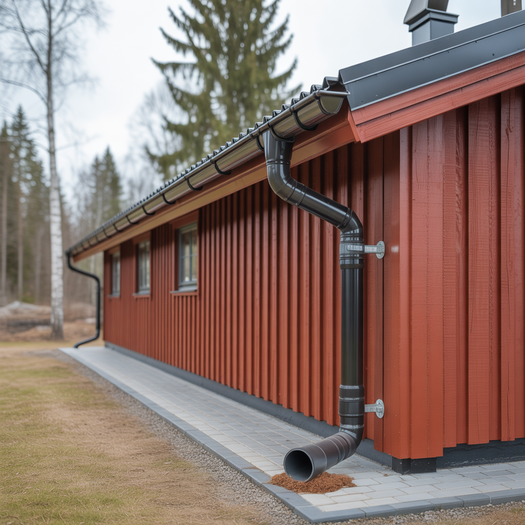 Montering av hängrännor och stuprör i Skebokvarn, Flen, Södermanlands län