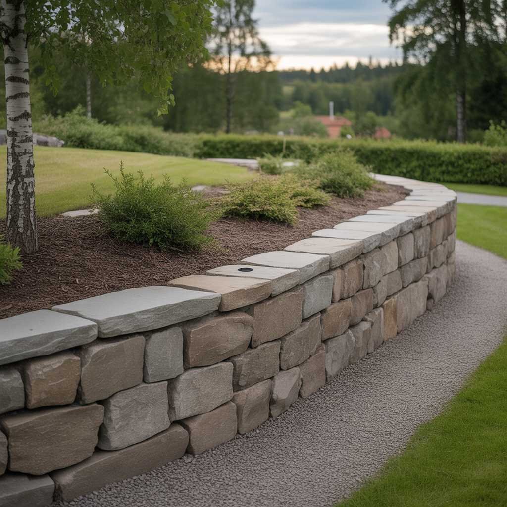 Uppdraget gällde en murad stödmur i Mellösa, Flen, Södermanlands län, där syftet var att säkra en slänt, vinna plana ytor för gångstråk och rabatter samt avleda ytvatten på ett kontrollerat sätt. Vi inledde med inmätning och höjdsättning, enklare geoteknisk bedömning utifrån befintliga jordlager samt tydlig etablering och avstängning av arbetsområdet. Utsättning skedde i samråd med […]